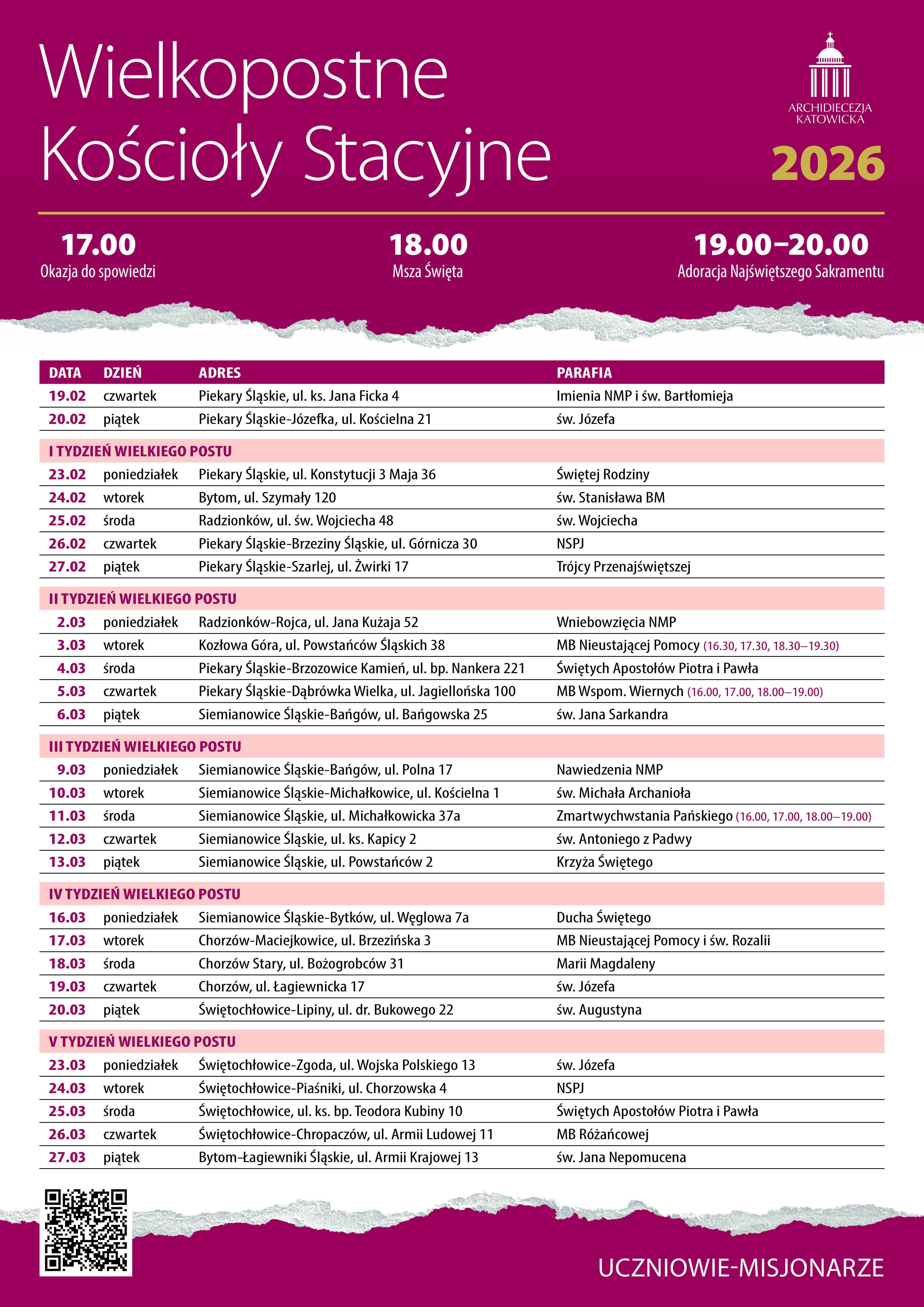 Po raz drugi zapraszamy do wielkopostnego pielgrzymowania po kościołach stacyjnych. Każdego dnia Wielkiego Postu (z wyłączeniem sobót i niedziel oraz Wielkiego Tygodnia) pielgrzymi odwiedzający kościoły stacyjne w dekanatach: piekarskim, siemianowickim, świętochłowickim oraz trzech parafiach Chorzowa, biorąc udział w liturgii będą mogli zdobyć pieczątki do specjalnie przygotowanych paszportów.